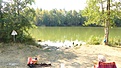 Nun findet wieder das Dehnungsübungs-Yoga statt, an dem ich jedoch nur sehr kurzzeitig teilnehme, weil ich unbedingt noch im See Tauschen und Schwimmen will, keine Badehose dabei hab, das Gelände kein FKK vorsieht und momentan nur sehr wenige Campinggäste schon draußen sind;