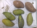 - Mango - 7 Stk - zwei Sorten der Mango Auslese (Nam dok mai und eine weitere) - 1261g ... die Nam dok mai haben allerdings irgend einen Schaden (Frostschaden?), die Schale hat sich braun verfärbt, obgleich sie noch eher unreif (leicht sauer) sind: