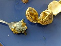 - Maracuja - 3 Stk, 50g ... eine hatte innen schon blauen Schimmel angesetzt ,,, aber es roch nicht unangenehm und so kostete ich ... und es schmeckte auch nicht unangenehm - also hab' ich's gegessen: