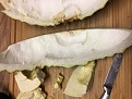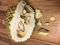 19:27-~20:00 - Durian Morn Thong (der essbare Teil eines Segments) ... die Frucht hatte eine faule Stelle, weswegen ich das betroffene Segment geöffnet habe - leider war das Fruchtfleisch größtenteils noch hart