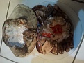 Als wir alle verabschiedet und aufgeräumt hatten, der Nahrungsbedarf nun unzweifelhaft deutlich wurde, roch ich erneut alles durch. Und nun gewann ganz eindeutig und mit Speichelfluss der Taschenkrebs. Platz 2 nahm die Rehkeule ein, was mich für die nächsten Tage hoffen lässt, diese für mich neue Produkt erschließen zu können. Platz drei belegten die Herzmuscheln.