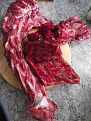 Innereien habe sie nicht. Ich fragte nach meinem gestrigen Haxenerlebnis danach und sie sagte, der Chef zerlege gerade ein Reh, sie frage ihn. Etwas später kam sie mit diesen Teilen: es sind über 3kg.