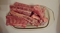Von links: eine ganze Seite vom Lamm (ich habe in dieser Saison noch keinen einzigen Apfel gegessen, inzwischen haben wir sie unseren Kindern mitgegeben), herrlich fette Rinderrippe, Tafelspitz mit dick Fett (hmmm), Knochen vom Lamm, Ochsenschwanz (sooooo super gestern Abend), eine 2kg schwere Rinderzunge (liegt für heute Abend bereit, hihi).