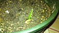 Und hier eine Minipflanze, die mir heuer in einem Topf aufgegangen ist. Wenn ich mich nicht irre, von einem Kaktusfeigenkern, den ich letztes Jahr da reingesteckt habe (-: