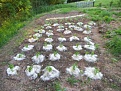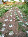 Das haben wir heute angelegt. Gurken mit Rankgerüst und als Mulch verwenden wir Schafswolle.