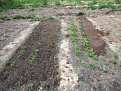 Hier ist noch nicht viel zu sehen, aber die Karotten spitzen schon raus und der Spinat wächst auch schon gut.